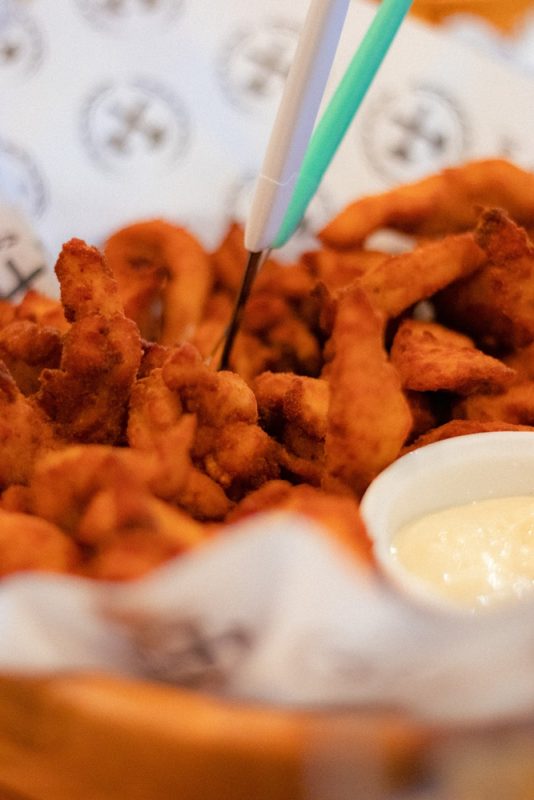 Filé de peito empanado no panko, acompanha fritas, molho especial e maionese.